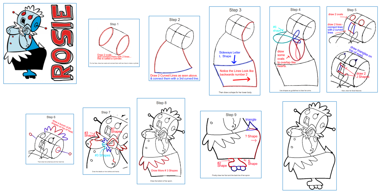 Tutorial - How to Draw Rosie from The Jetsons with Easy Step by Step Drawing Tutorial | By Lisa | drawinghowtodraw.com | September 6, 2012